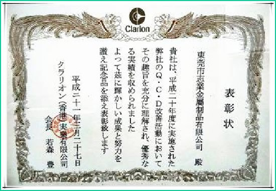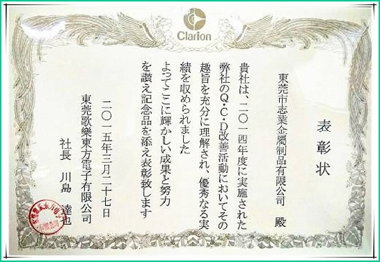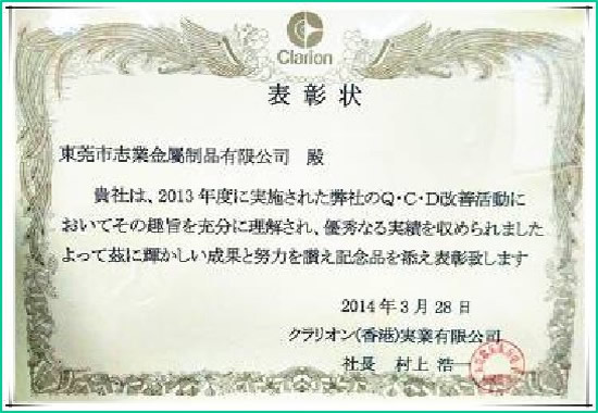公司于2006年取得ISO9001:2000、ISO14001:2004體系認證,2007年已全面推行7S,2009年已全面推行TS16949體系并取得相關認證,2018年3月已獲得IATF16949轉版認證。